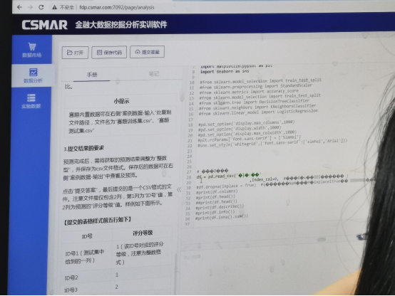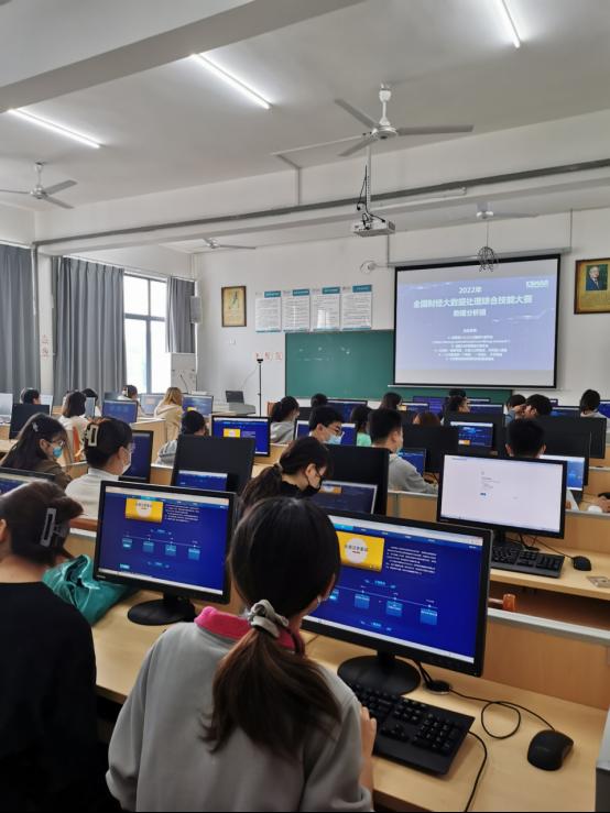 本网讯(文、图/于恩锋)2022年10月16日上午,由中国商业会计学会主办、深圳希施玛数据科技有限公司等单位承办的2022年第一届全国财经大数据处理综合技能大赛本科赛道的全国赛正式开赛。由于疫情原因,本次大赛采用线上与线下结合方式进行。我院金融数学专业派出4支队伍参赛(线下3队,线上1队),在16日上午10点在实训楼B604参与比赛。
