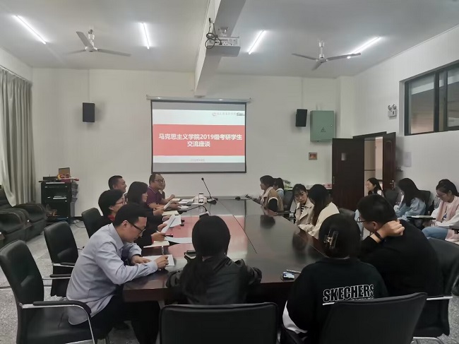本网讯(文/张红丽 图/赵棋棋)10月19日,马克思主义学院在实训楼B104室以线上线下相结合的方式开展2023届考研学生慰问,学院全体领导班子成员参加慰问,座谈交流会由张红丽主持。