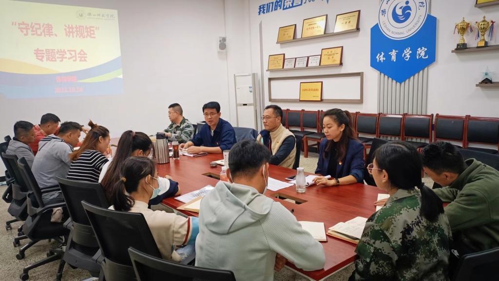 本网讯(文/熊仪、图/罗治钧)10月24日,体育学院在特教305会议室召开“守纪律、讲规矩”专题学习会,会议由体育学院党委书记钟大勇主持。