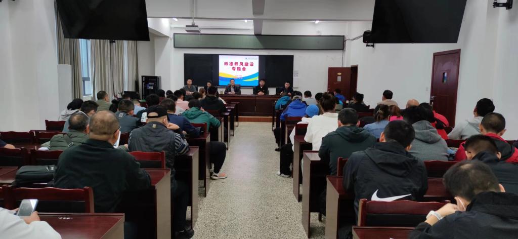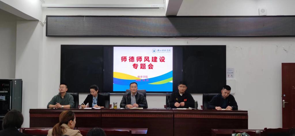 本网讯(文/熊仪、图/裴庚)10月28日,体育学院在特教406会议室召开师德师风建设专题学习会,全体教职工参加学习。会议由院长张峰主持。