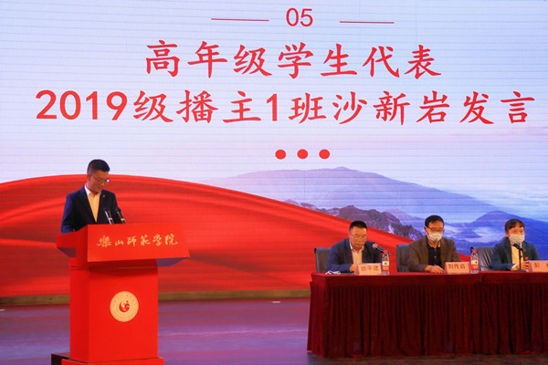 之后,高年级学生代表2019级播主1班沙新岩分享了自己在乐师学习生活的心得体会,并表达了对学弟学妹们的鼓励和期许。新生代表汉语言文学3班赵彬颖分享了自己对大学生活的向往与憧憬,并表示在新的起点应该以新的精神面貌认真对待。