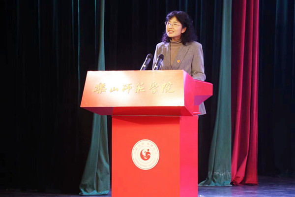 随后院长任志萍讲话,她代表学院全体师生向新生们表示热烈欢迎。在讲话中,她带领师生们回顾了乐师和学院的发展历程,展示了学院深厚的文化底蕴;介绍了学院近几年在学科建设、人才培养、师资队伍建设等方面取得的突出成绩,鼓励大家在大学中对自身未来发展进行合理规划,找到自己的方向。教师代表张德军激励同学们要“迎着新起点的第一缕阳光,站在新起点的起跑线上,努力学会做人、学会求知、学会生存、学会协作、学会健体、养成良好习惯,奠定美好人生”。