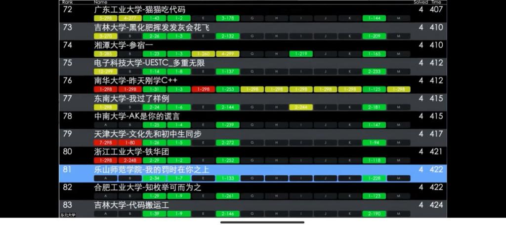 本次比赛于11月6日中午12点正式开始,比赛时长为5个小时,比赛题目总共有13题。最终,浙江大学参赛队成功解出8题,获得比赛冠军;北京大学和山东大学的参赛队均成功解出7题,分别获得亚军和季军。我校由崔伟浩、覃彦和姜涛组成的参赛队成功解出4题,在703支正式参赛队伍中,排名第81位,获得比赛银奖。卡塔尔世界杯决赛波胆预测 全国排名第54位,在四川省参赛高校中排第3位,仅次于电子科技大学和西南财经大学(比赛完整排名见:https://board.xcpcio.com/icpc/47th/shenyang)。这是我校继2018年和2021年两次获得全国邀请赛铜奖后,首次在亚洲区域赛中获奖,并获银奖。这是我校参加此项赛事以来获得的最好成绩,取得了历史性突破。