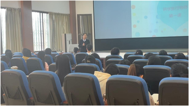 11月18日,学院在实验楼3D教室举行了第三期研学导师培训开班典礼,学院副院长但强、孟凡帅老师、吴薇老师以及50名参加培训的同学参加了开班典礼。但强首先介绍了研学旅行的发展前景,希望同学们珍惜学习机会,掌握扎实的研学导师技能。他强调,同学们不仅要具备导游基本能力,更要具备教师基本素养,希望同学们经过培训都能顺利考取研学导师资格证书,真正学有所获。孟凡帅就研学导师培训班的课程安排作了相关介绍,并提出相关要求,叮嘱同学们要按时上课,认真听讲,做好笔记,顺利结业。开班典礼结束后,吴薇开始了研学导师课程的第一讲。