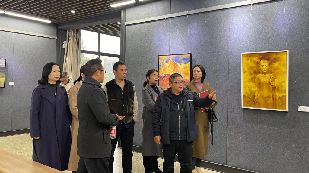 本网讯(文图/周允、荣志彬)11月30日上午,美术与设计学院第五届“艺路向西”美术学教师暑期写生作品展在我校美术馆隆重开幕。出席本次展览开幕式的嘉宾有:乐山市沙湾区文旅文史政协委员曾浩磊、乐山市沙湾区文学艺术联合会副主席余烨、四川省文化传播有限公司董事长、乐山市沙湾区沫若故居展览执行负责人杨雪。美术与设计学院全体领导班子成员、参加写生活动的八位教师出席开幕式,美术与设计学院部分师生、我校国培项目—乐山市农村美术骨干培训教师参加画展开幕式。开幕式由美术与设计学院副院长熊火花主持。