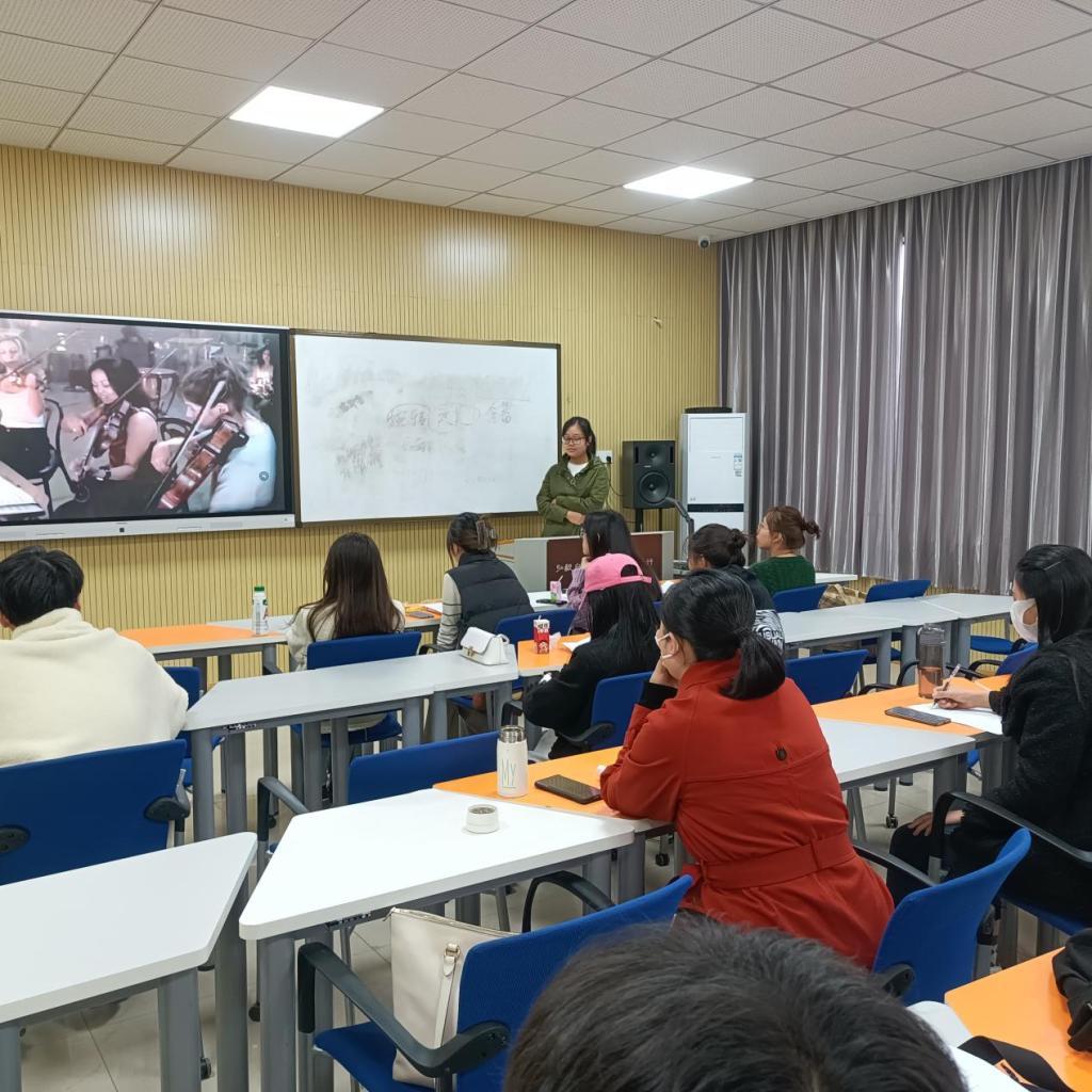 11月30日,吴喜、黄莉、范文婧等九位老师在音乐学院智慧教室给学生们进行了知识拓展学术讲座,讲座提高了的学习兴趣,拓展了课外知识,了解在实践表演中情感处理的重要性。