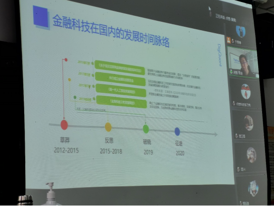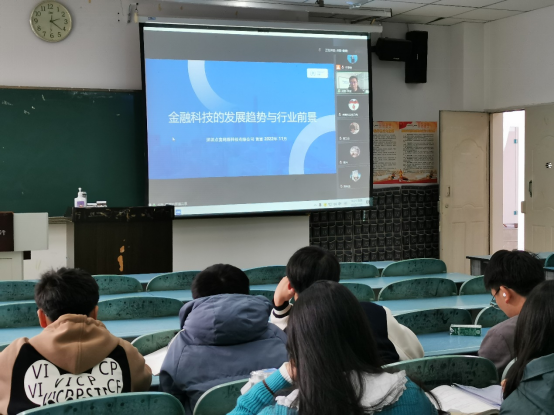 点宽公司董事长、创始人黄嵩为本次讲座的主讲人,黄董是英国兰开夏中央大学航天物理系计算机硕士,香港城市大学高级工商管理硕士,具有17年的金融行业从业经验,主导多个千万级大型金融应用系统项目,在多所大学和机构/协会任职。在时长一个半小时的讲座中,黄嵩着重从四个方面深入介绍了金融科技的前沿发展:国内外金融科技发展历程、金融科技行业未来热点细分领域、资管科技在中国的发展、金融科技人才需求等。报告后黄嵩解答了学生提出的专业就业岗位相关问题。