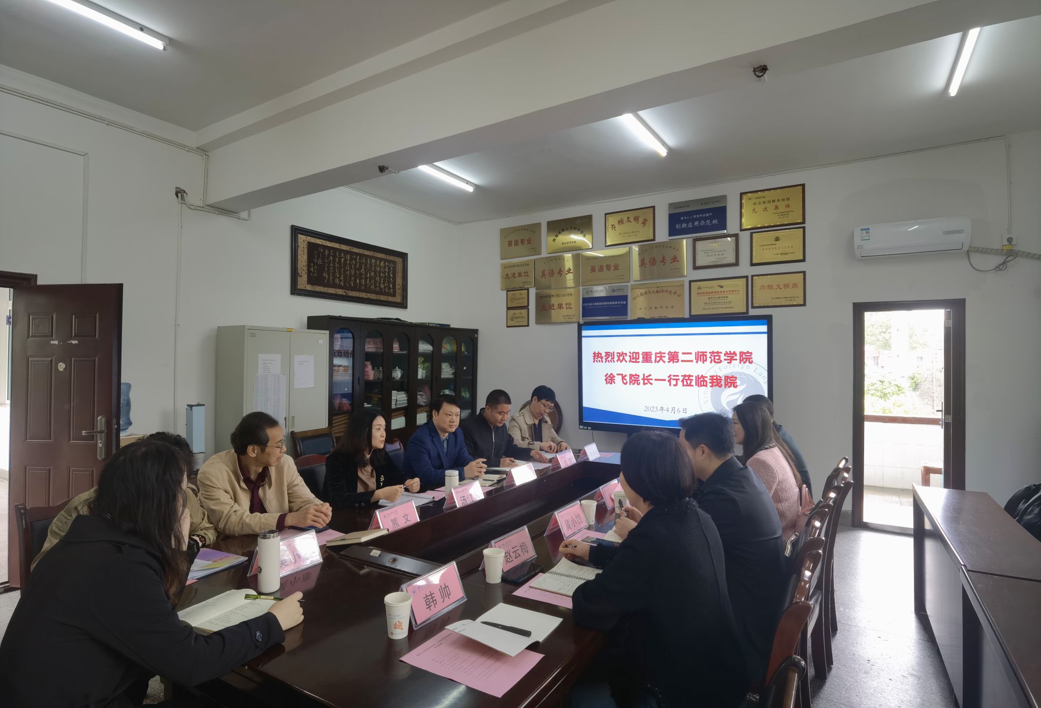 本网讯(文/徐波 图/李英)4月6日上午,重庆第二师范学院外国语学院院长徐飞一行到外国语学院考察交流。外国语学院全体领导班子、教学督导汤红娟教授参加了本次交流。