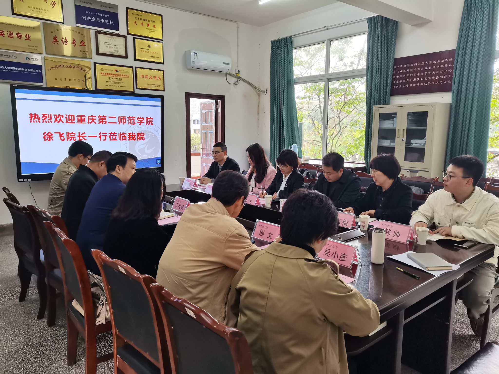 双方一致认为,作为川渝地区的兄弟学院,双方具有较大的共性和互补性,应该进一步加强合作,共同发展,并形成了深度合作意向。双方一致同意,在成渝经济圈建设的框架下,在教学、科研、学科、师资、人才培养、实践基地建设等领域全面实现共建共享,共赢发展。下一步,双方将在专业建设、学科建设、师资、学生工作等层面形成合作框架,列出年度合作任务清单,发挥双方各自优势,全力实现1+1大于2的建设效益。