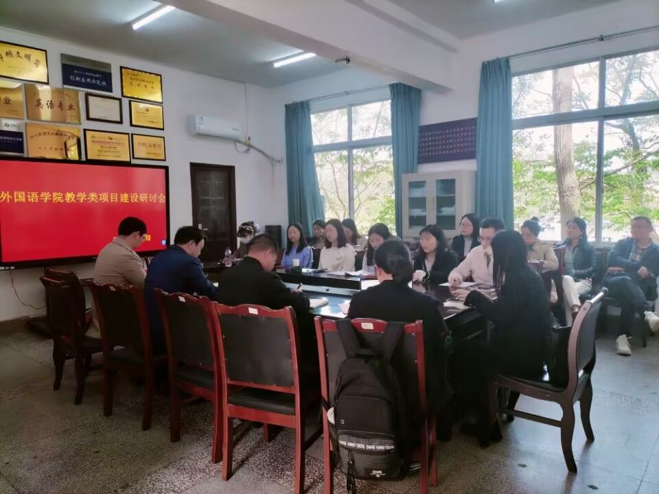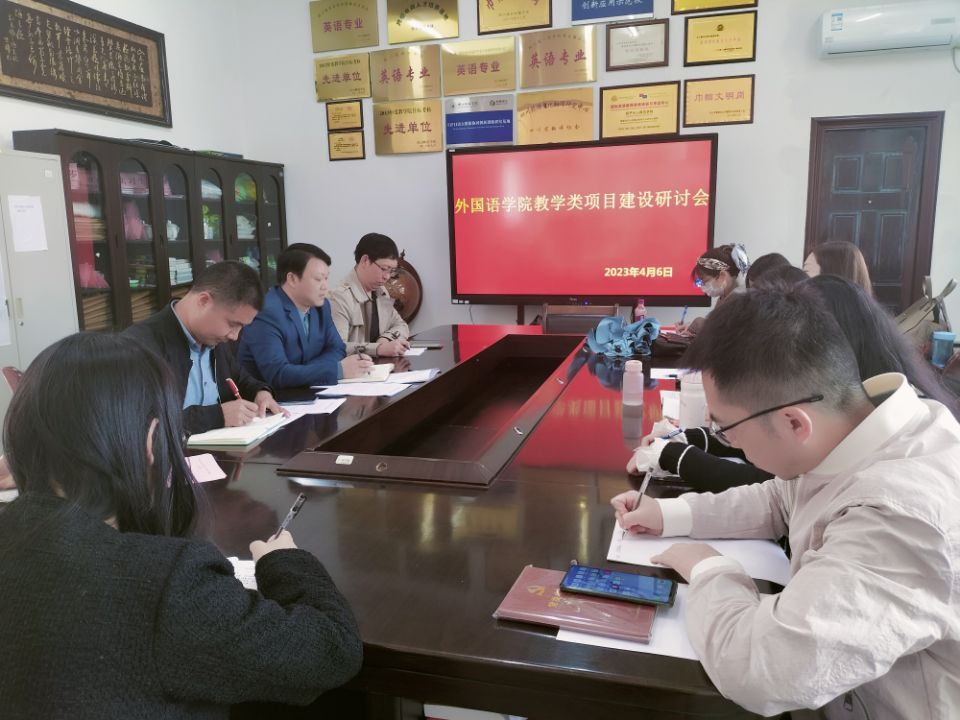 本网讯(文/刘紫英 图/景爱民)4月6日下午,外国语学院在三楼党政办公室召开了教学类项目建设研讨会。学院院长江世勇、副院长徐波、副院长陈开富、各系部主任,以及承担教学类项目相关教师参加研讨会。研讨会由徐波主持。