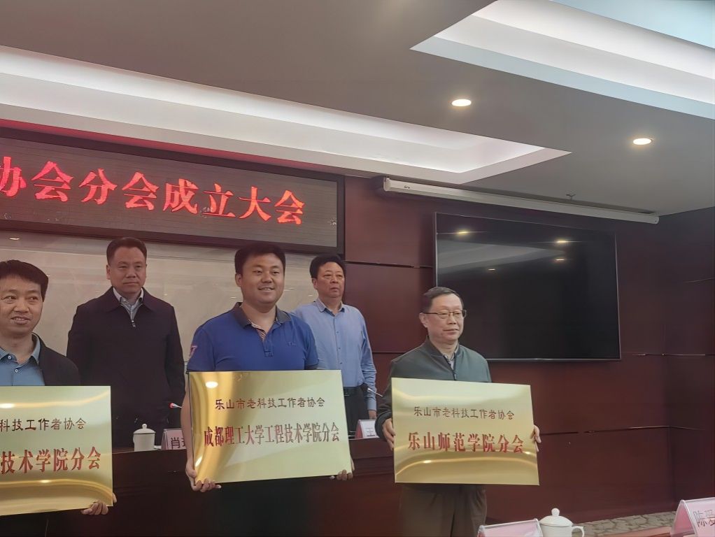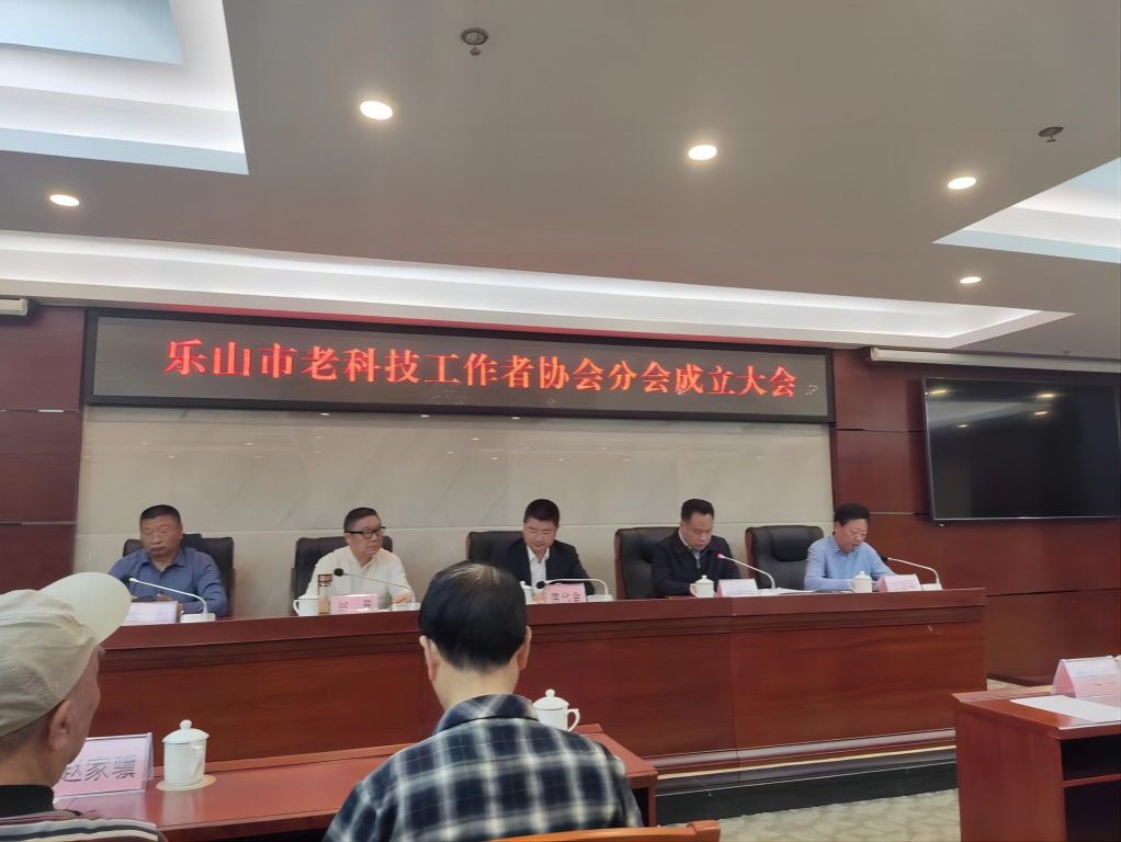 本网讯(文/王德明 图/刘静)4月14日上午,乐山市老科技工作者协会分会成立大会在乐山市老年活动中心召开,乐山市市委常委、市委统战部长席代金、现乐山市老科协会长肖瑶伦、副会长余彪、理事王定军、前乐山市老科协会长翁果、市委老干部局、市科协、市人社局、市卫健委、市财政局以及相关分会领导等出席了会议,会议由肖瑶伦主持。我校老教授协会、老科协会长刘笃成教授、离退休工作处处长刘静、副处长王德明代表我校参加了会议。