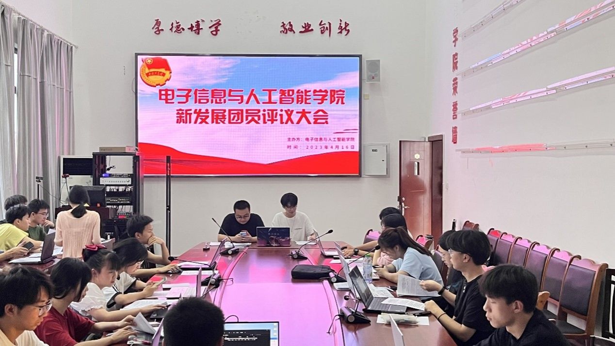 本网讯(文/陈圣 图/陈俊宏)为加强电子信息与人工智能学院团组织建设,壮大团员队伍,为共青团注入新鲜血液。4月16日晚上7点,电子信息与人工智能学院在特教C501开展了新发展团员评议大会,参加大会人员有辅导员肖苗、电智学院分团委副书记李梁、分团委副书记成宇豪以及各班级团支书,此次会议由李梁和成宇豪共同主持。