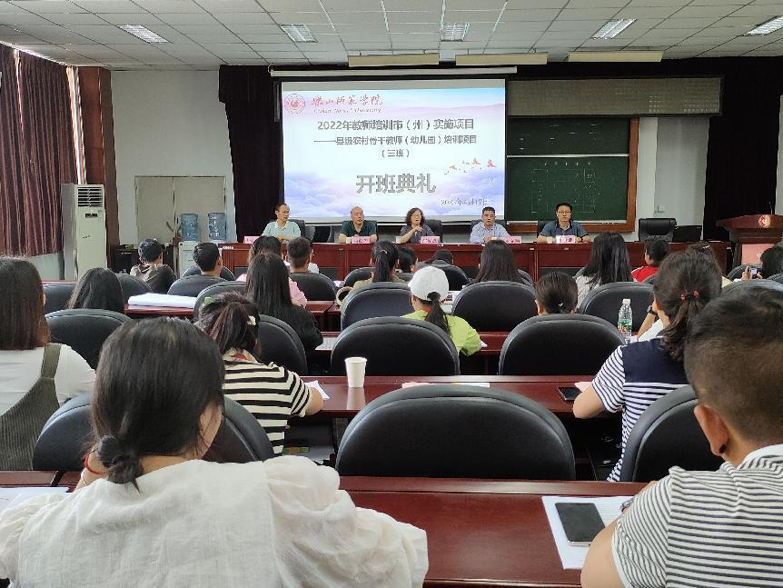 本网讯(文/蒋显兰 图/陈珊)4月17日上午,四川省2022年中小学幼儿园教师培训市(州)实施项目——凉山州“一村一幼”长期稳定的骨干辅导员培训(三班)开班开班典礼在弘毅楼413教室成功举行。教育科学学院院长兼国培首席专家汪红烨,党委书记罗立顺,党委副书记何晓军,副院长徐世鼎、唐前军,教学班主任余祥、李非易,生活班主任杨林及50名学员参加了此次开班典礼。开班典礼由徐世鼎主持。