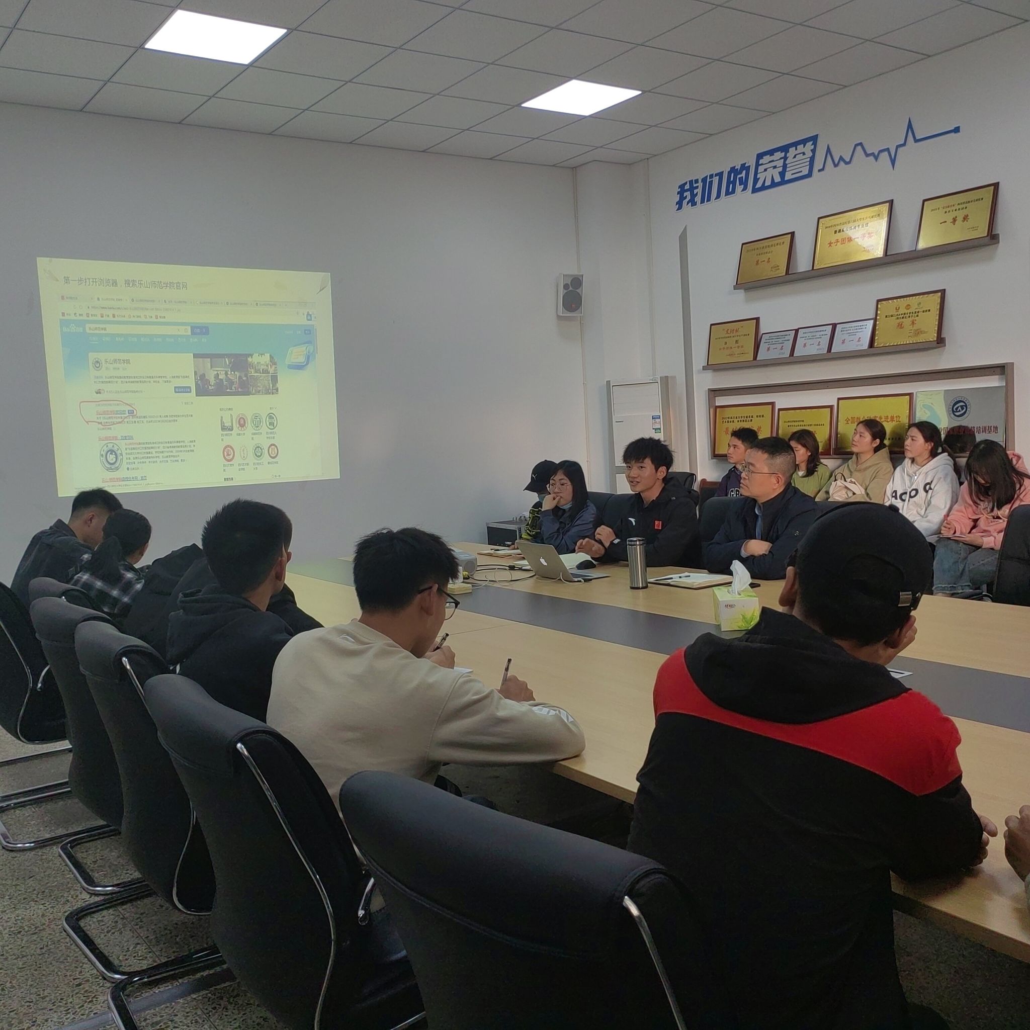 会上,陈勋玮首先就本年度“大学生创新创业训练计划项目”申报工作的任务和目标作了介绍说明,并结合之前开展的相关工作,为与会同学现场解答了涉及政策、程序等方面的问题。20级李长海同学现场为大家演示了项目申报的基本流程,并结合自己参加往届项目申报工作的经历,同大家分享了自己的经验。