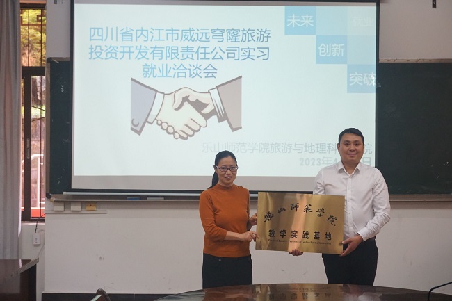 本网讯(文/江馨雨 图/张雯)近日,旅游与地理科学院邀请四川省内江市威远穹窿旅游投资开发有限责任公司到学院实验楼102教室开展了实习就业洽谈。学院院长郭剑英、副院长孙永兴、2020级辅导员孟凡帅老师以及该公司执行董事兼经理郭飞、综合管理部部长王一璠参加了此次洽谈会。