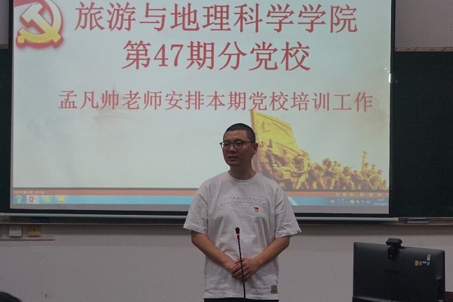 本网讯(文/江馨雨 图/喻山)4月21日,旅游与地理科学学院第47期分党校开班典礼在旅院楼102室举行。典礼由欧阳思红同学主持。学院党委书记徐秀云、党委委员孟凡帅、本学期新确定的发展对象及入党积极分子参加了开班典礼。