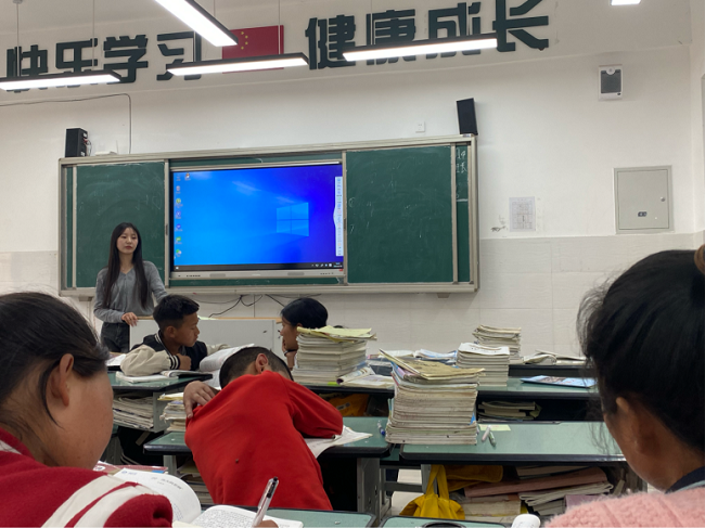 早上六点坐上启程的大巴车,一路上的风景和即将面对的孩子一样,对我而言都无比新鲜。高耸的山、窄窄的路,一路摇摇晃晃的我们。我上课的第一个班是七年级5班,一进门他们便问,老师你是教什么的。他们都很热情,有问不完的问题。