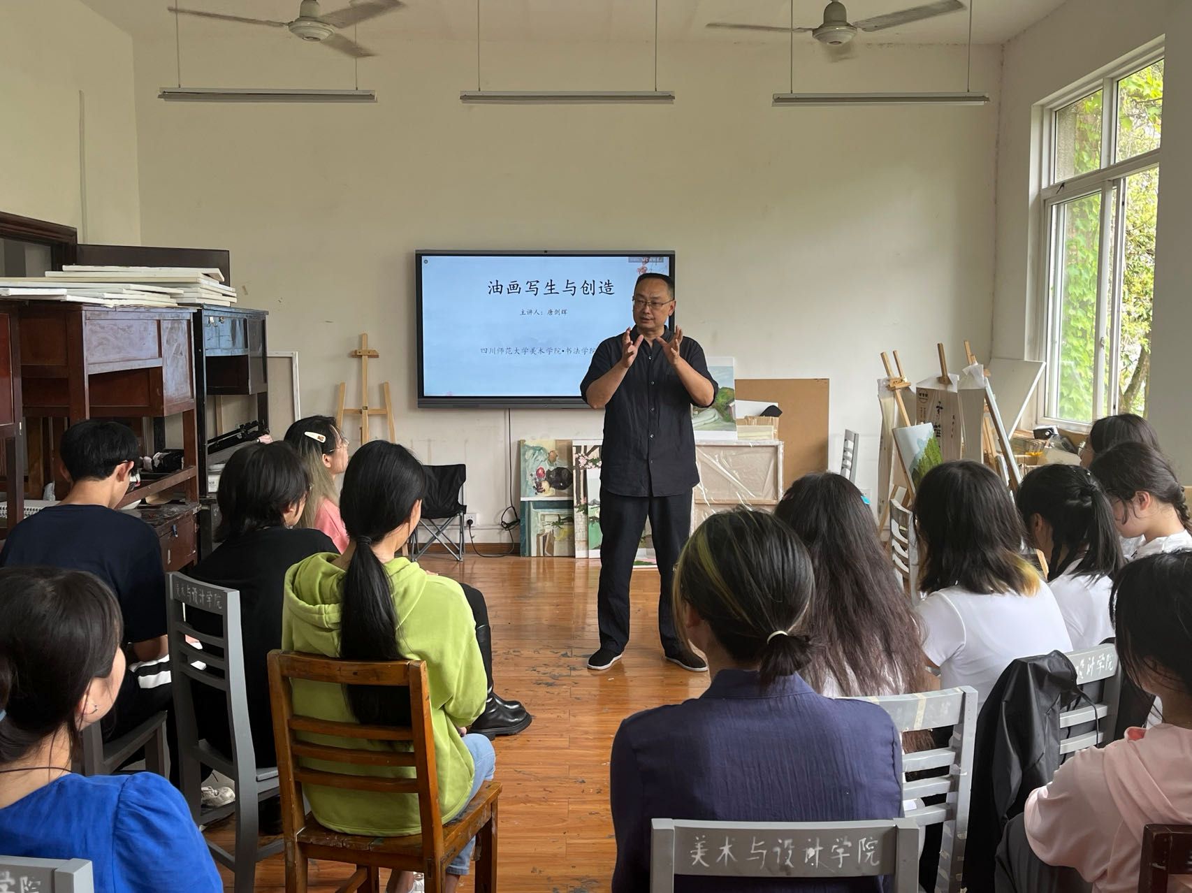 本网讯(文、图/刘桐江、任自林)在庆祝卡塔尔世界杯决赛波胆预测 高等教育办学45周年之际,美术与设计学院特邀校友导师、四川师范大学美术学院书法学院副院长、硕士研究生导师唐剑辉,中国美术家协会理事黄云飞来校开展专业讲座并现场做示范画。讲座于4月20日15:30分别在致远楼300教室、305教室举行,由美术与设计学院副院长熊火花主持,油画教研室部分教师,2021级、2022级美术学专业同学参加了讲座。