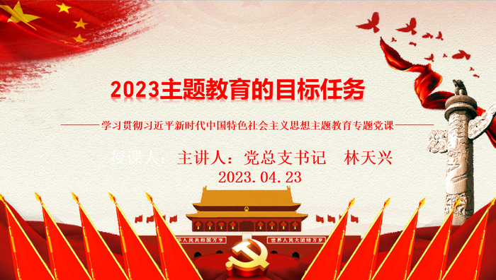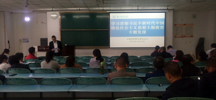 本网讯(文、图/代成刚)4月23日下午,后保部党总支书记林天兴在行知楼125教室讲学习贯彻习近平新时代中国特色社会主义思想主题教育专题党课,党总支全体党员参加。