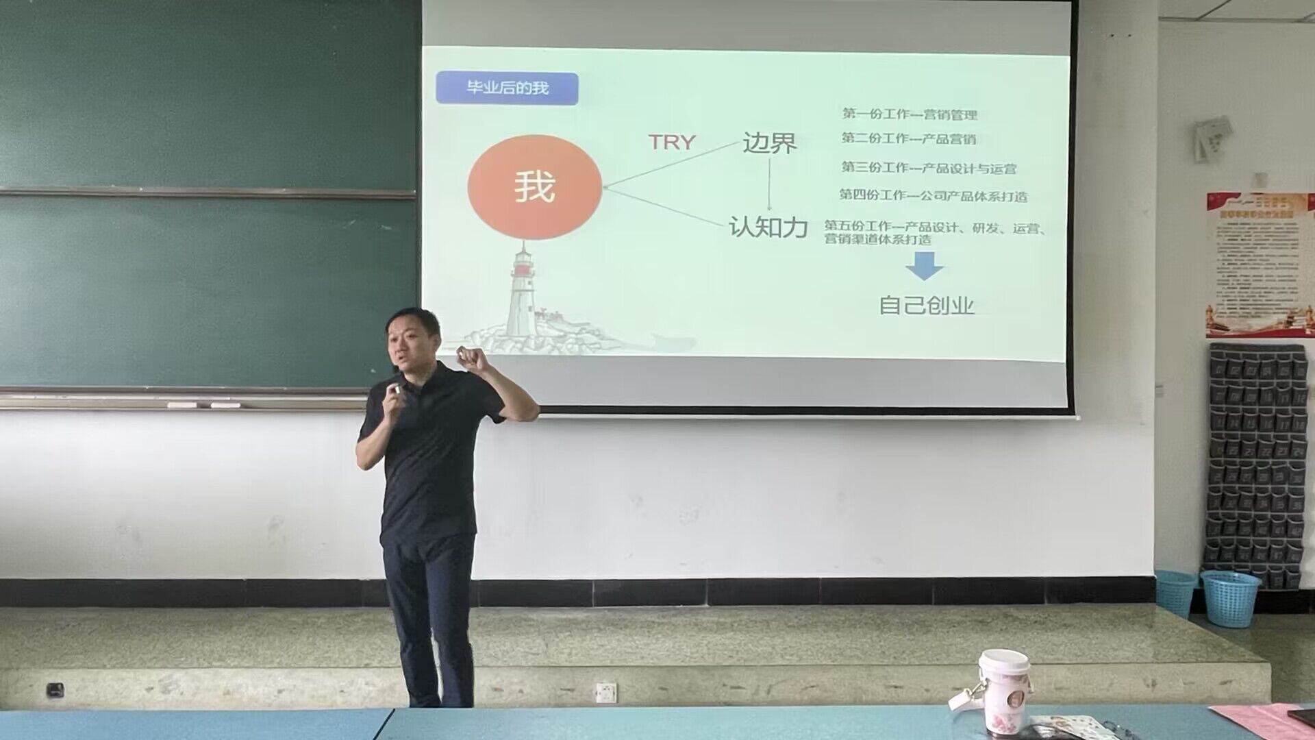 讲座第二阶段范明介绍了自己的公司以及薪酬待遇,为学弟学妹们提供了部分就业岗位,部分同学通过扫描PPT上的二维码了解招聘信息。