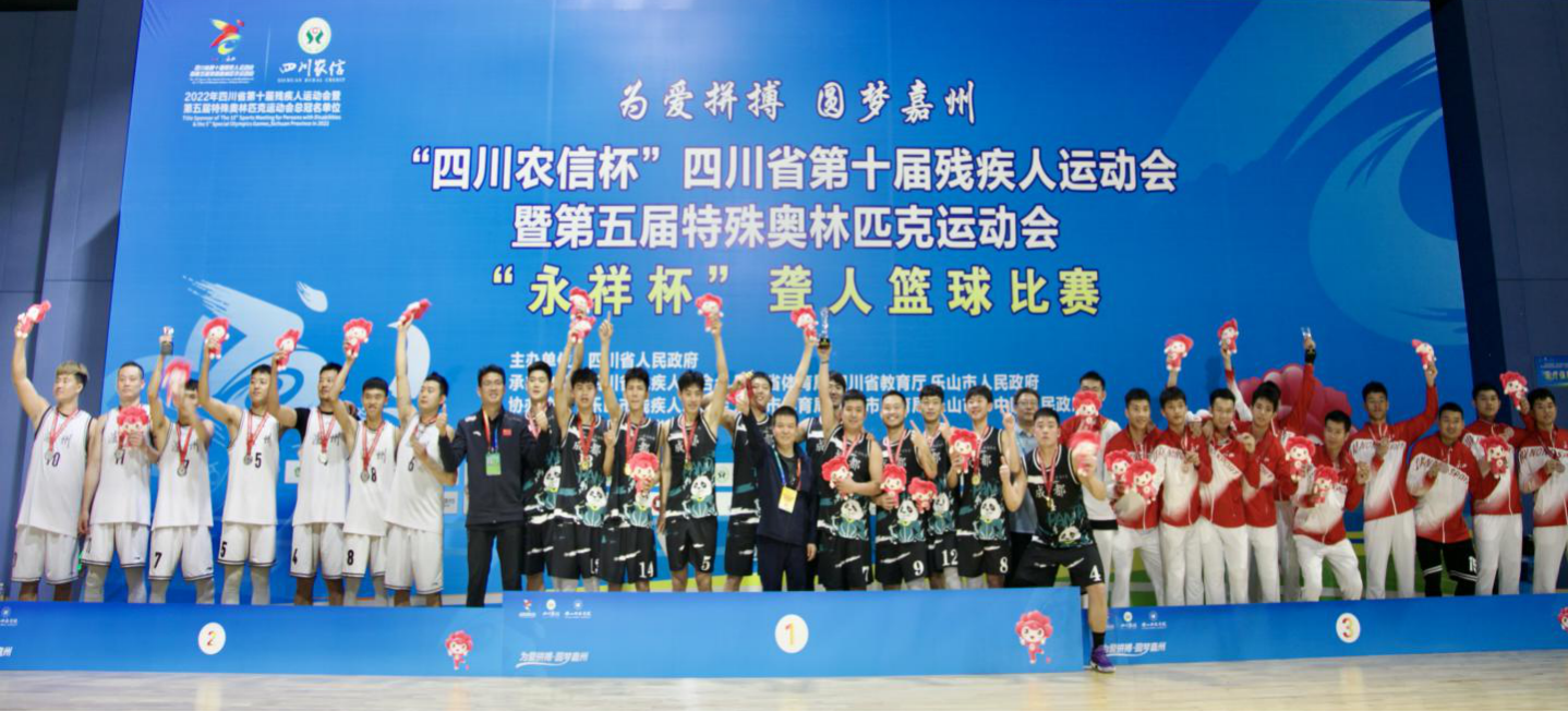 (文/熊仪、裴庚图/耿海迪、郭傲雪、周钦红)“四川农信杯”四川省第十届残运动暨第五届特奥会聋人篮球比赛于4月21—26日在乐山市奥林匹克体育中心举行,本项比赛有来自13个市(州),共14支球队参赛。比赛期间,运动员们在赛场上充分发挥自尊、自信、自强、自立的体育精神,展现出身残志坚、顽强拼搏、挑战自我的精神面貌,以顽强拼搏、团结协作、勇敢超越的作风诠释了“为爱拼搏·圆梦嘉州”的运动会主题。聋人篮球赛事于4月26日上午圆满结束,在乐山市奥体中心篮球馆举行颁奖仪式。