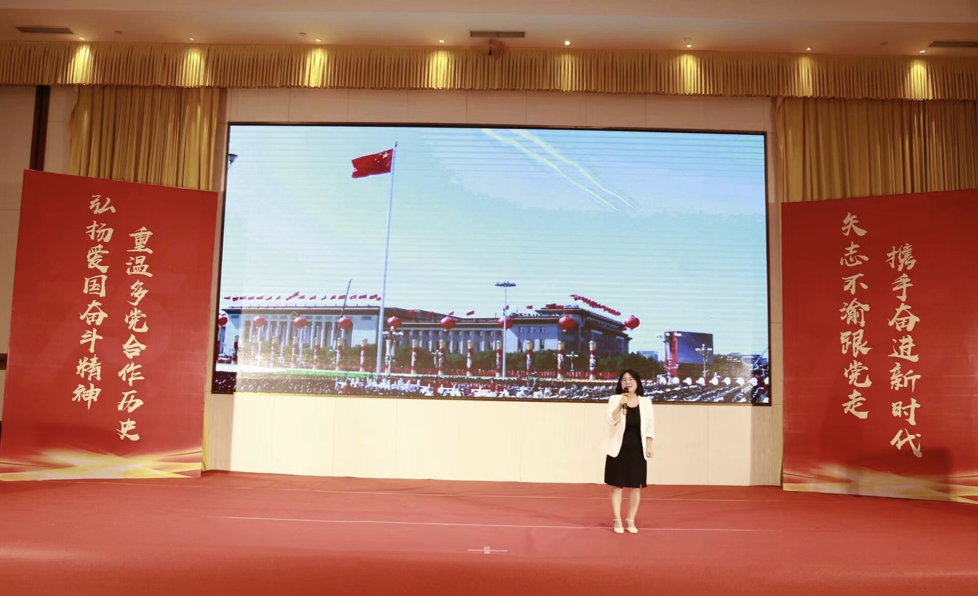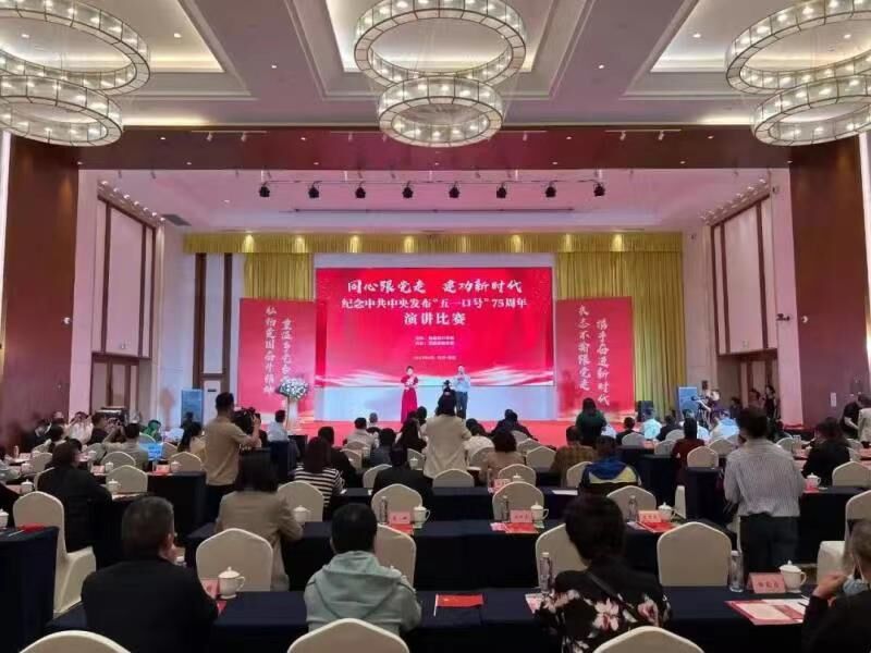 本网讯(文、图/刘瑶瑶、演讲比赛会务摄影)4月27日,由民盟四川省委主办、民盟资阳市委承办的“同心跟党走·建功新时代”纪念中共中央发布“五一口号”75周年演讲比赛在资阳举行。民盟四川省委副主委、四川人民艺术剧院艺术总监董凡,民盟资阳市委主委、市政协副主席廖荣江,中共四川省委统战部党派处处长张媛出席活动。
