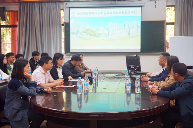 本网讯(文/苏杰,图/苏杰,张雯)根据《四川省教育厅关于开展2022年本科层次职业教育人才培养试点工作的通知》要求,世界杯葡萄牙vs加纳波胆预测 与四川工程职业技术学院、四川省旅游投资集团有限责任公司联合开展了本科层次职业教育人才培养改革试点项目,职教本科班46名同学已从2022年9月起在四川工程职业技术学院报到并开始了学习。4月27日,职教本科班46名同学由四川工程职业技术学院旅游管理系党总支书记余立勤带队,在旅游管理系党政办副主任于浣等5名老师的具体组织下来到我校参观交流。我校旅游与地理科学学院党委书记徐秀云、副院长孙永兴、党委副书记冉勇和学生管理科科长江纳等热情接待了余立勤一行。
