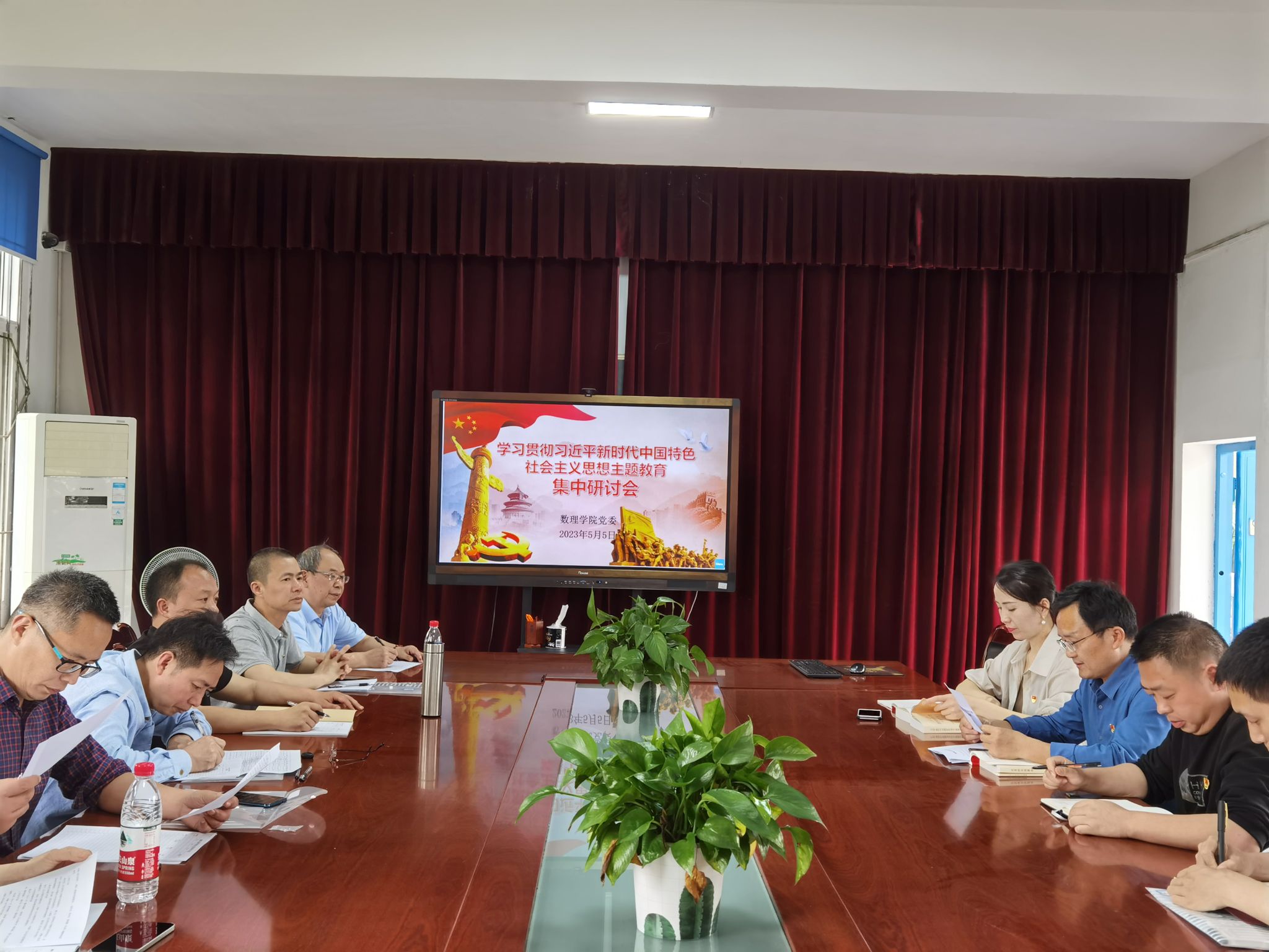 本网讯(文、图/余瑶)5月5日,数理学院学习贯彻习近平新时代中国特色社会主义思想主题教育专题二级中心组集中研讨会在学院会议室召开。学院处科级干部、党委委员、纪委委员、支部书记、教研室主任、各专业负责人参加会议,党员均佩戴党徽,会议由党委副书记、院长屈小兵主持。
