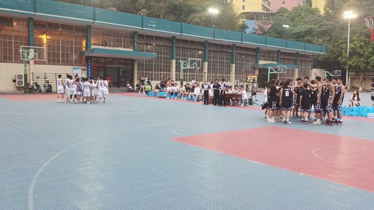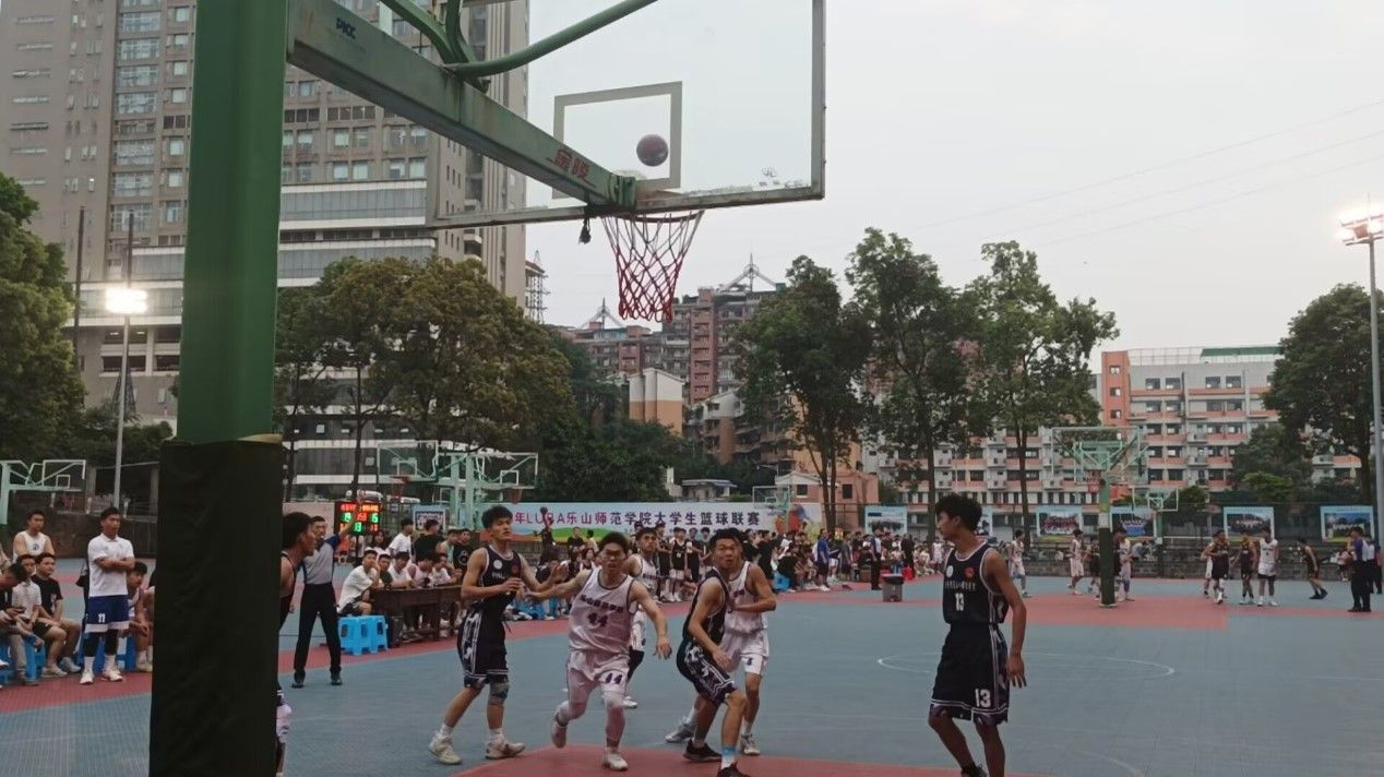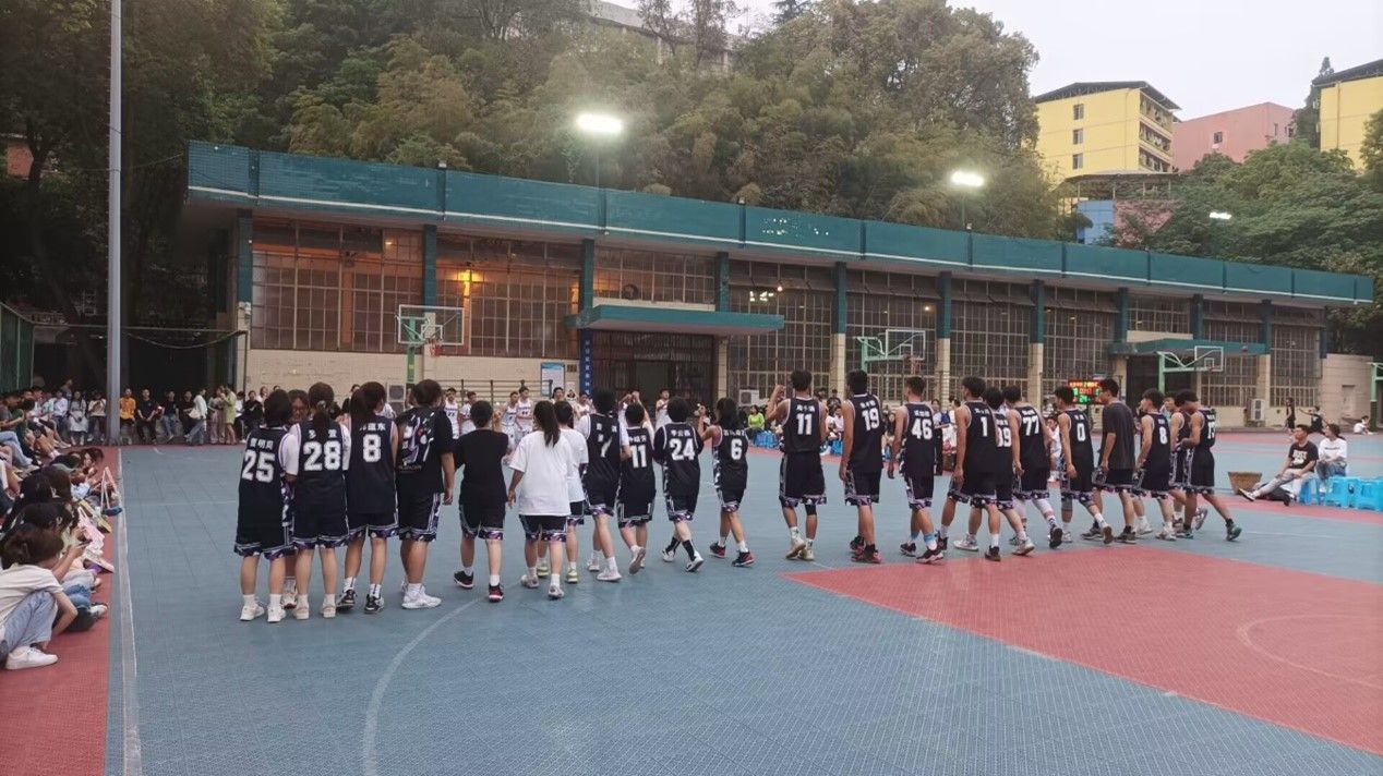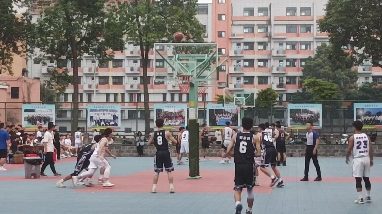 4月27日,由于天气原因双方球队只对战了第一节比赛,身着黑色队服的电智学院篮球队在第一节利用高位对抗优势,借助队友的掩护与挡拆,不断进球领先近十分。在接下来的比赛中,对手利用包夹的策略给我方球队带来一定压力,但球队也随机应变,迅速调整,双方比分交替上升。