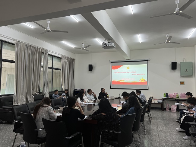 李涛首先讲解了此次研讨活动的安排以及此次研讨活动开展的意义。接着学院领导班子带头进行了交流发言。马克思主义学院院长郑文杰从解决如何学、主要学什么的问题和把习近平新时代中国特色社会主义思想转化为指导实践、推动工作的强大力量两个方面进行了交流。学院党委副书记钟永淑以勇于自我革命精神全面推进党的建设新的伟大工程为题,对阅读习近平总书记的《论党的自我革命》进行了读书分享。副院长蒋政从历史唯物主义角度出发,分享了从党的十八大以来习近平总书记关于历史主动精神的重要论述,强调要一直坚持把辩证唯物主义和历史唯物主义作为我们的看家本领。副院长赖伟从全面学习和重点学习相结合、立足于工作实际学、要学到习近平新时代中国特色社会主义思想的思想精髓三个方面谈了学习体会。学院党委书记李涛以“学好用好习近平新时代中国特色社会主义思想的世界观和方法论”为题,深入浅出地阐释了党的二十大报告中“六个必须坚持”的内容。