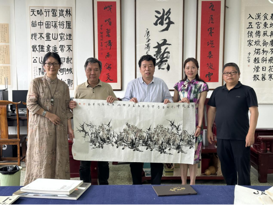 同时嘉州画派传承人盛志中开展了《嘉州画派山水技法研究》、卜敬恒《嘉州画派国画材料应用研究》、袁林《嘉州画派花鸟画技法研究》的专题交流讲座。美术与设计学院教授李开能、书法专业负责人杨德明向张小冬赠送书画作品。