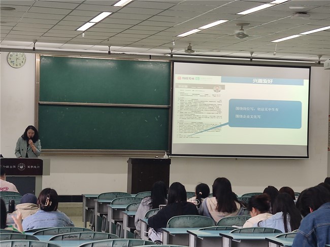 杜晓明从“HR筛选一份简历需要多长时间?”切入主题,指出简历并非证书和经历的简单堆砌,强调了一份优秀的简历在求职过程中的重要性。杜晓明根据自身多年的工作经验从简历制作的底层逻辑、简历的模块化分析以及如何着手制作简历三个方面进行讲解,通过举例子分情况说明如何制作简历,让同学们清楚的知道如何使自己的简历匹配性强、言简意赅、内容充实并拥有美观的排版。同时建议同学们要从招聘信息入手来分类制作简历,使同学们在制作简历时有更清晰的思路。最后,她提醒大家要在有限的时间里不断丰富自己的履历,提高核心竞争力,为未来成功就业打下坚实基础。