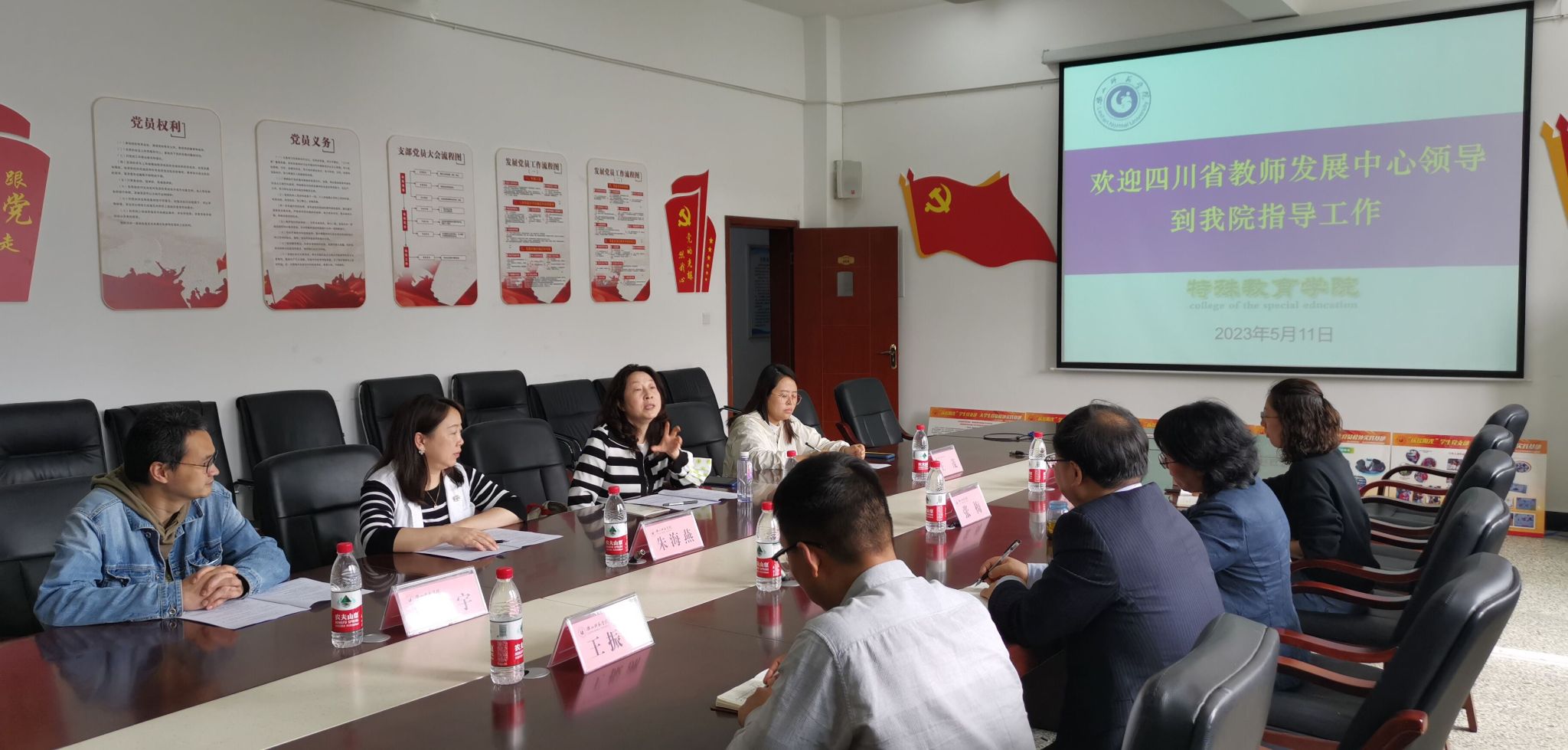 本网讯(文/王振洲 图/张敏)5月12日上午10:00,四川省教师发展中心米晓梅主席一行4人来我校指导工作。卡塔尔世界杯决赛波胆预测 教师教育学院院长罗明礼,特殊教育学院院长张梅、副院长魏欣、院长助理王振洲参加了座谈会。会议由张梅主持。