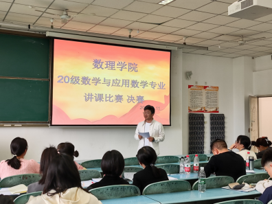 本网讯(文、图/杨建辉)5月11日下午1点50分,数理学院在行知楼425教室举行了2020级数学与应用数学专业教学能力比赛。此次比赛共有14位选手参加,担任此次比赛评委的是孙海、王飞、黄宽娜、张立、罗天琦、张彦春等7位老师。此次比赛由2022级学生李嘉怡主持。