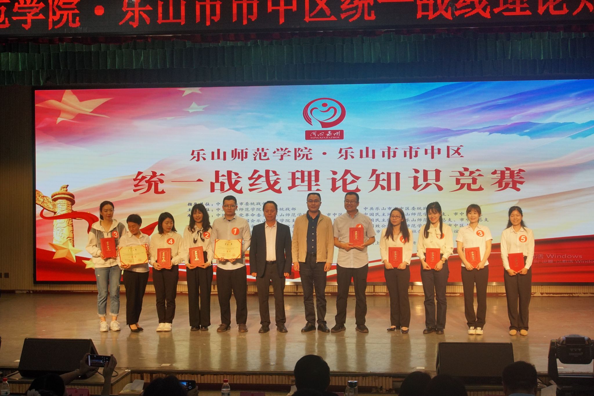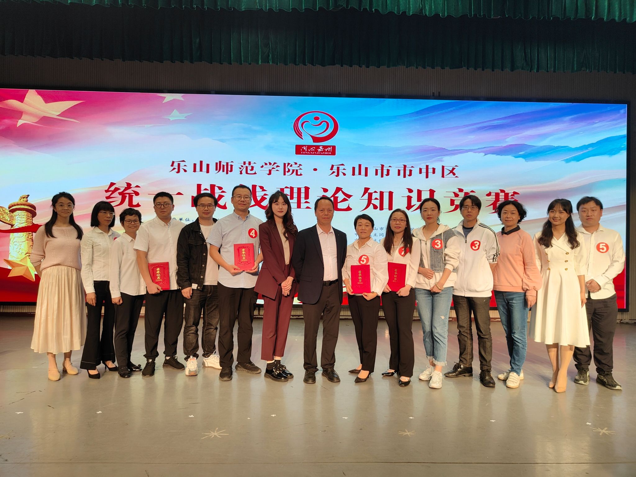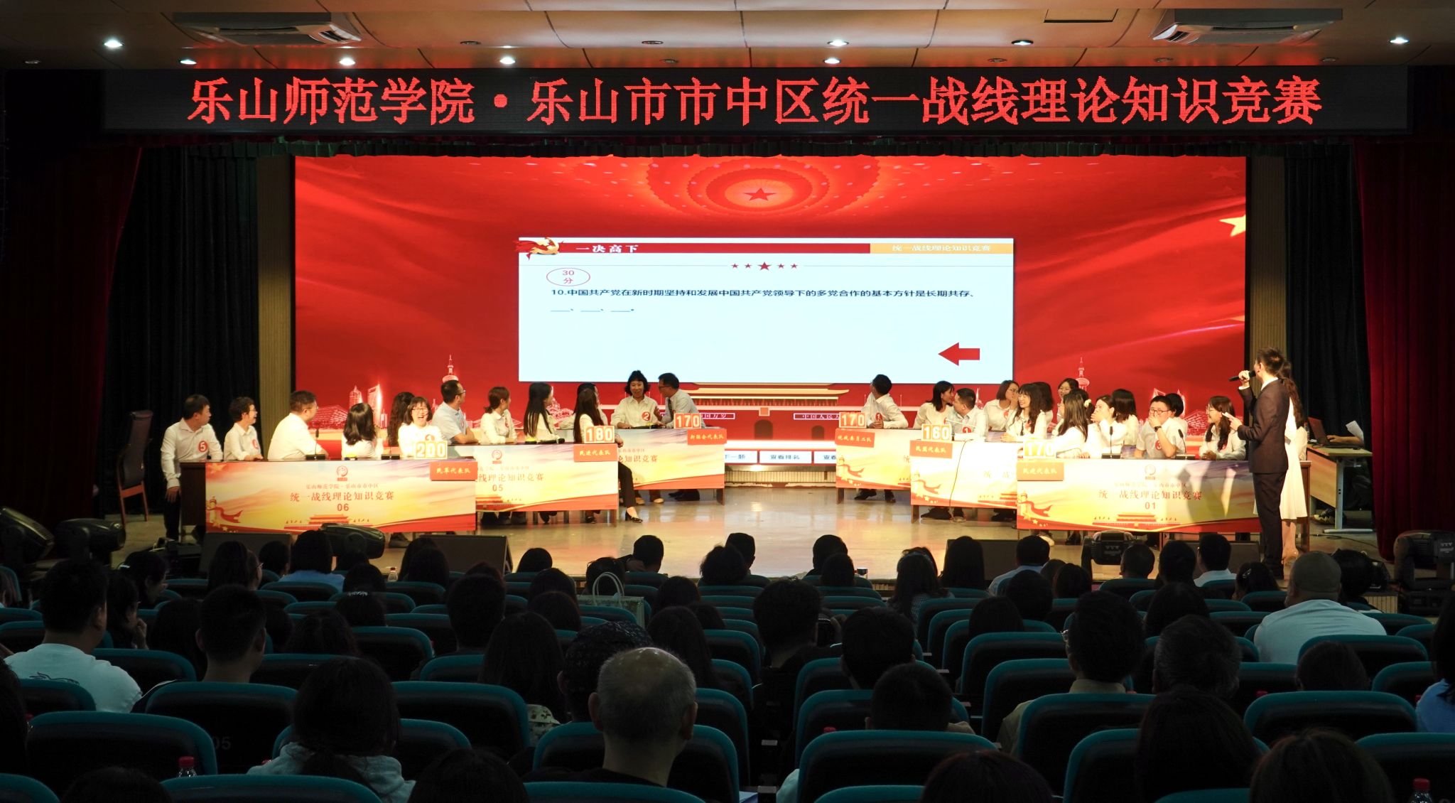 本网讯(文、图/黄渝婷、区委统战部)5月11日,我校和乐山市市中区统一战线理论知识竞赛在乐山市市中区学生发展中心梦想剧场举行。校党委统战部副部长周绍炳、统战科科长黄渝婷,乐山市委统战部四级调研员黄雪松,区委常委、统战部部长刘斌,区政府副区长、民盟乐山市委副主委朱丹,区政协副主席、致公党区支部主委郭玉玲等相关领导出席活动。