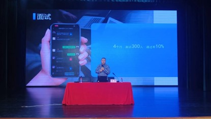 首先,主讲人们向同学们简单介绍了自己。随后,龙虓就“简历是一块敲门砖”向同学们讲解简历的重要性。他表示简历在开始的竞争中占据重要的地位,简历要求精简,内容短小精悍,而漂亮的简介内容需要同学们不断的尝试,用丰富经历填满,他强调社会实践的重要性,支持和鼓舞同学们积极实践,不断探索。