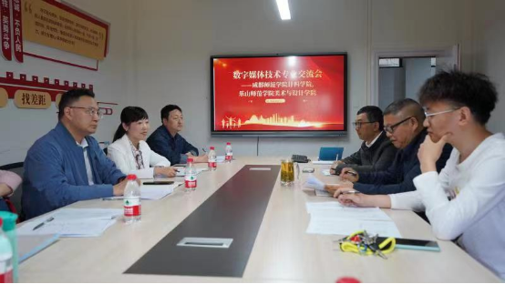 本网讯(文图/马彧廷)5月12日,成都师范学院数字媒体技术老师一行七人,在计科学院党委书记许欣荣、副院长张敏会的带领下,到我校美术与设计学院进行了一次深入的教研交流。党委副书记兼院长熊泽文、副院长兼数字媒体技术专业负责人门涛、实验室主任王建军、数字媒体技术教研室主任马彧廷、数字媒体技术专业骨干教师龚娟娟参加了此次交流会议。