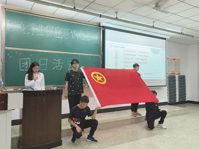活动开始,全体肃立,迎团旗,奏唱团歌。随后,大家观看了警示教育片,视频详尽讲述了三类泄密案件的发生发展过程,深刻揭示了相关案件发生的原因,警示同学们要提高对国家秘密的敏感性,认识到保护国家秘密的重要性。接下来,全体人员重温入团誓词,铿锵有力的誓言振奋人心,表现出当代青年维护国家安全的决心。主持人对本次活动进行总结后,此次主题团日活动圆满结束。