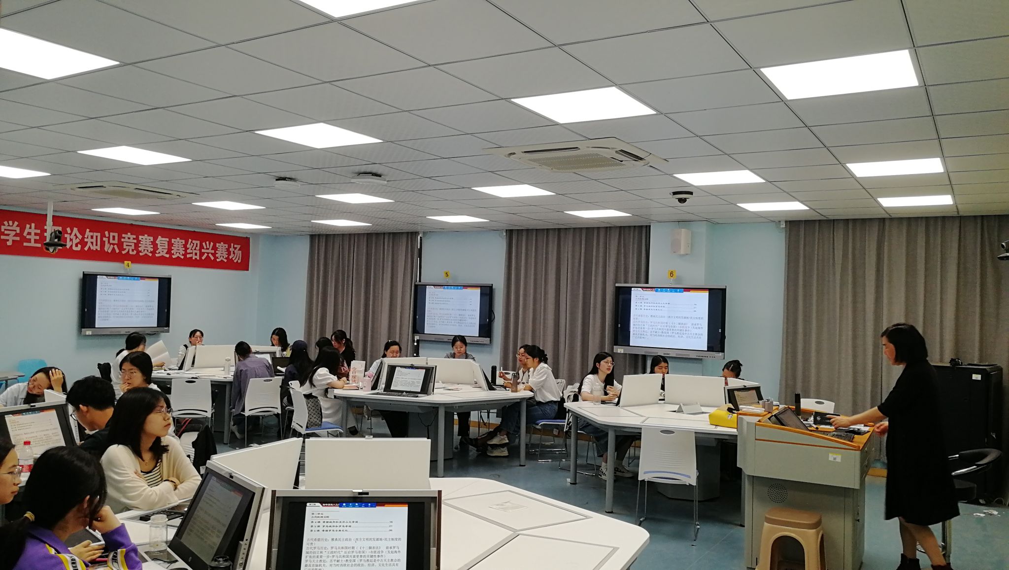 大家首先参观了的绍兴文理学院马克思主义学院教学实训中心等办学硬件设施,了解办学场地、设备设施运用、师范技能训练及相关经费情况。
