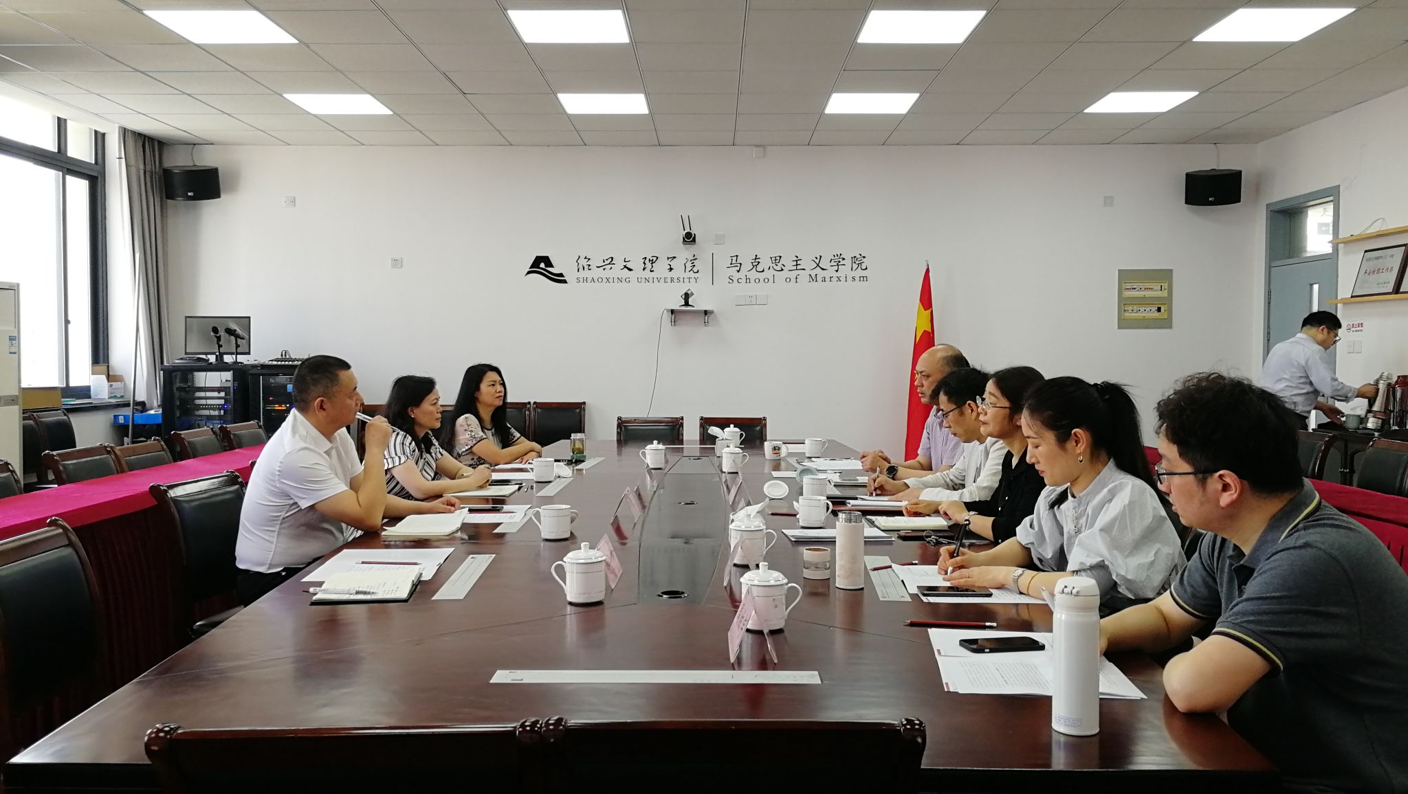 本网讯(文图/郭晖)5月15日,马克思主义学院郑文杰、李涛等一行4人到绍兴文理学院开展调研交流活动。