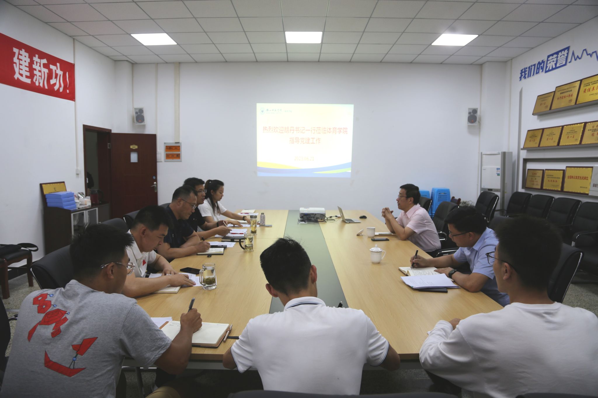 本网讯(文/杜小敏 图/裴庚)6月21日上午,党委书记胡丹到体育学院调研学习贯彻习近平新时代中国特色社会主义思想主题教育的开展情况,党政办副主任张茂一,体育学院领导班子,胡丹联系的支部、培养考察对象参加了调研会。