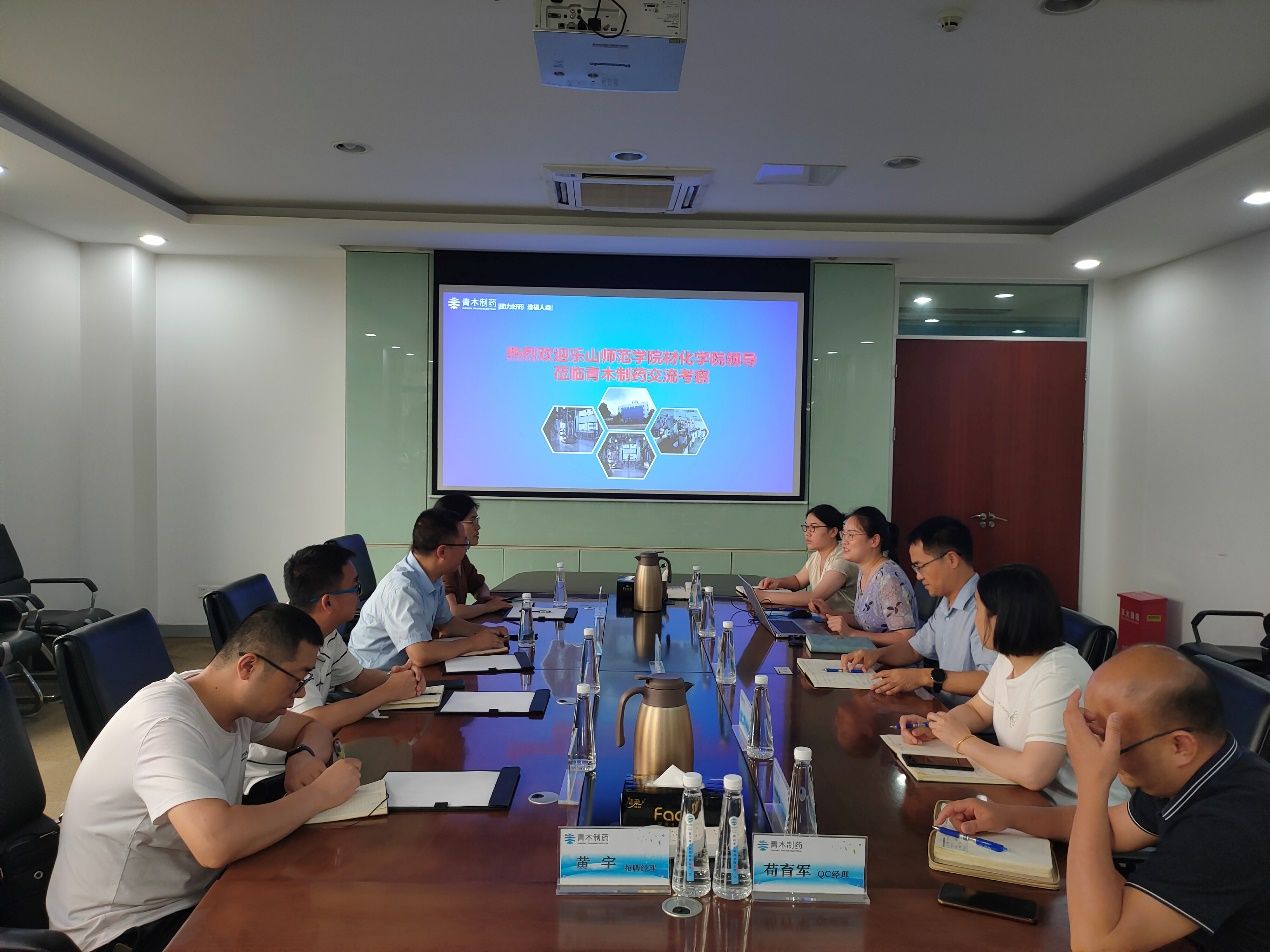 青木制药运营副总方崇良、行政人资总监孟文琴、质量总监余霞、技术部经理张勤奋、人事经理杨婧娜等人热情接待了马旭光一行,介绍了公司发展历程、研发技术平台、企业文化和人才需求,以及目前企业、行业和市场现状,表达了校企双方深入合作的意愿,希望双方建立长期深入合作关系,实现校企合作共赢。马旭光向青木制药介绍了学院办学情况、师资力量、科研平台等,表达了与企业共建实践实习实训基地、共同培养专业人才等方面的需求。胡涛就学院近年来人才培养质量、就业情况和就业意向与对方进行了沟通交流。双方就今后实习、招聘、学生毕业设计指导、人才培养工作以及合作模式等开展了深入讨论。
