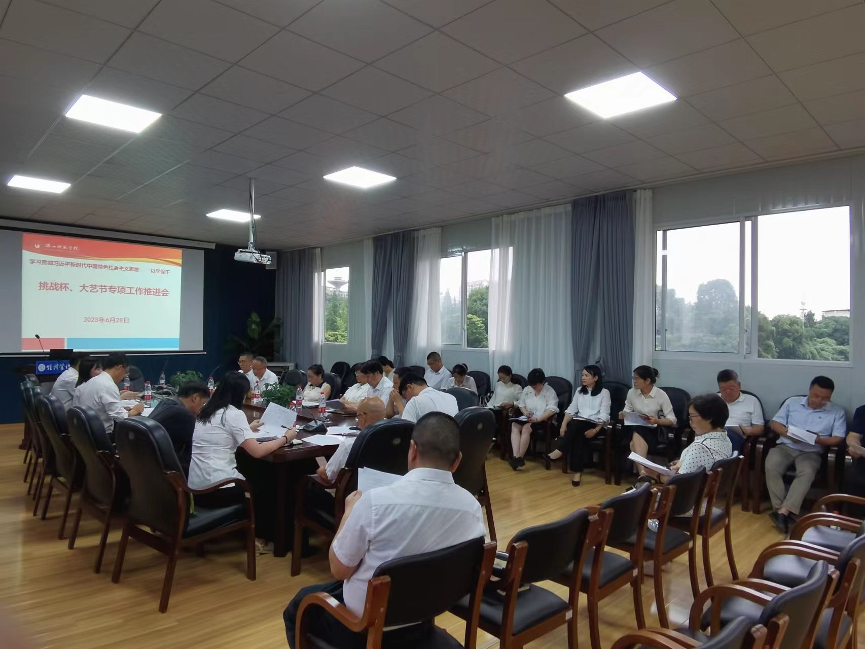 会上,李朝晖分享了带队到成都师范学院学习调研“挑战杯”相关工作的体会,强调积极参与“挑战杯”系列竞赛的重要意义,希望各学院狠抓落实,稳步推进相关工作。随后,余雨懁介绍了团委对“挑战杯”系列竞赛的前期筹备情况,并就黑科技展示及“红色专项”赛道的申报材料要求及时间进度进行了解读。翟雅媛就“大艺节”参赛作品情况进行了汇报,特别对“美育案例”板块作了介绍。杨蓓蓓对以上工作后续推进安排进行了补充说明。