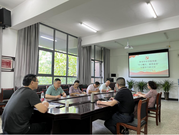本网讯(文、图/巴玉宁)6月30日下午,教育科学学院党委在特教B栋101会议室召开二级中心组(扩大)学习会,围绕“牢记嘱托、感恩奋进”,开展集中学习和专题研讨。会议由学院党委书记罗立顺主持,院长、九三学社社员汪红烨参会。