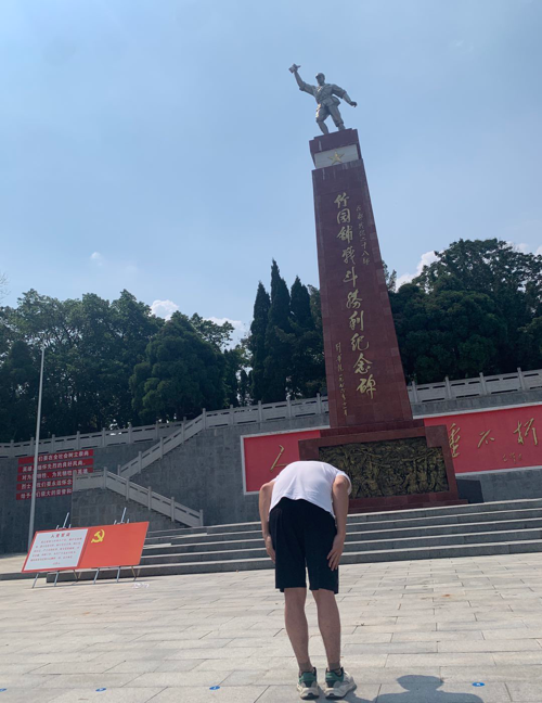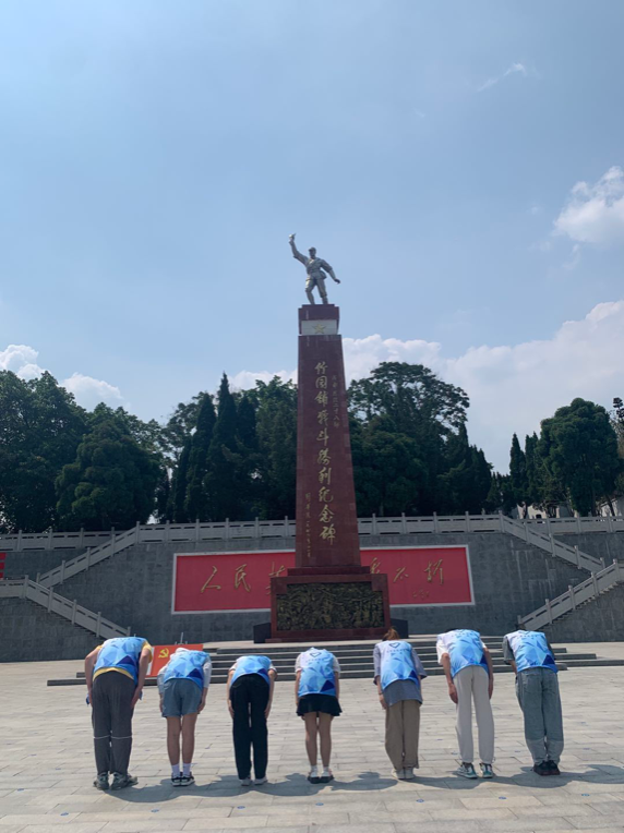 全体师生党员一进入园内就感受到一种庄严肃穆的气氛,在观看完竹园铺战斗纪念馆之后,大家在宏伟庄严的竹园铺战斗胜利纪念碑前,怀着无比沉重的心情向革命先烈鞠躬致敬,以表对英雄先烈的无限哀思和敬仰。