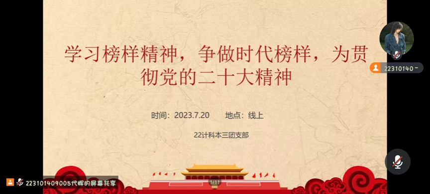 本网讯(文/吴佳旺,图/黄泽静)为深入开展学习贯彻习近平新时代中国特色社会主义思想主题教育,鼓励青年成为习近平新时代中国特色社会主义思想的坚定的信仰者、积极的传播者和忠实的践行者。7月20日,电子信息与人工智能学院组织2021级和2022级各班学生在腾讯会议观看《榜样7》和《功勋闪耀》两部影片。