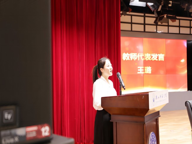 典礼在庄严的国歌声中拉开帷幕。首先,杨益代表全院师生向2023级、2021级专升本新同学的到来表示最热烈的欢迎,并对走好大学之路,提出三点建议:一是要提升认知,在务实求真中学会学习:二是要锐意进取,在厚积博观中创新突破;三是要心怀梦想,在奋起前行中收获成长。教师代表王璐分享了自己的求学经历,希望同学们坚定理想信念,做一个正直、善良的人,要追求卓越,提高学习的“本事”,锻炼做事的“本领”,在新的起点重新出发。