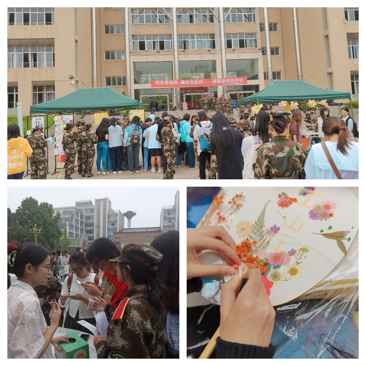 本次活动以“明月寄相思,美好共此时”为主题,共计2天,以“许愿祈福”、“灯谜猜猜猜”、“礼乐投壶”、“自制永生花扇面”、“自制月饼赠他人”等活动,将“月满人团圆”的浓厚情感融入其中,现场还特别准备了“花好月圆”、“万事胜意”繁体书法作品,启发同学们去思考中秋节的文化内涵,增强文化自信。