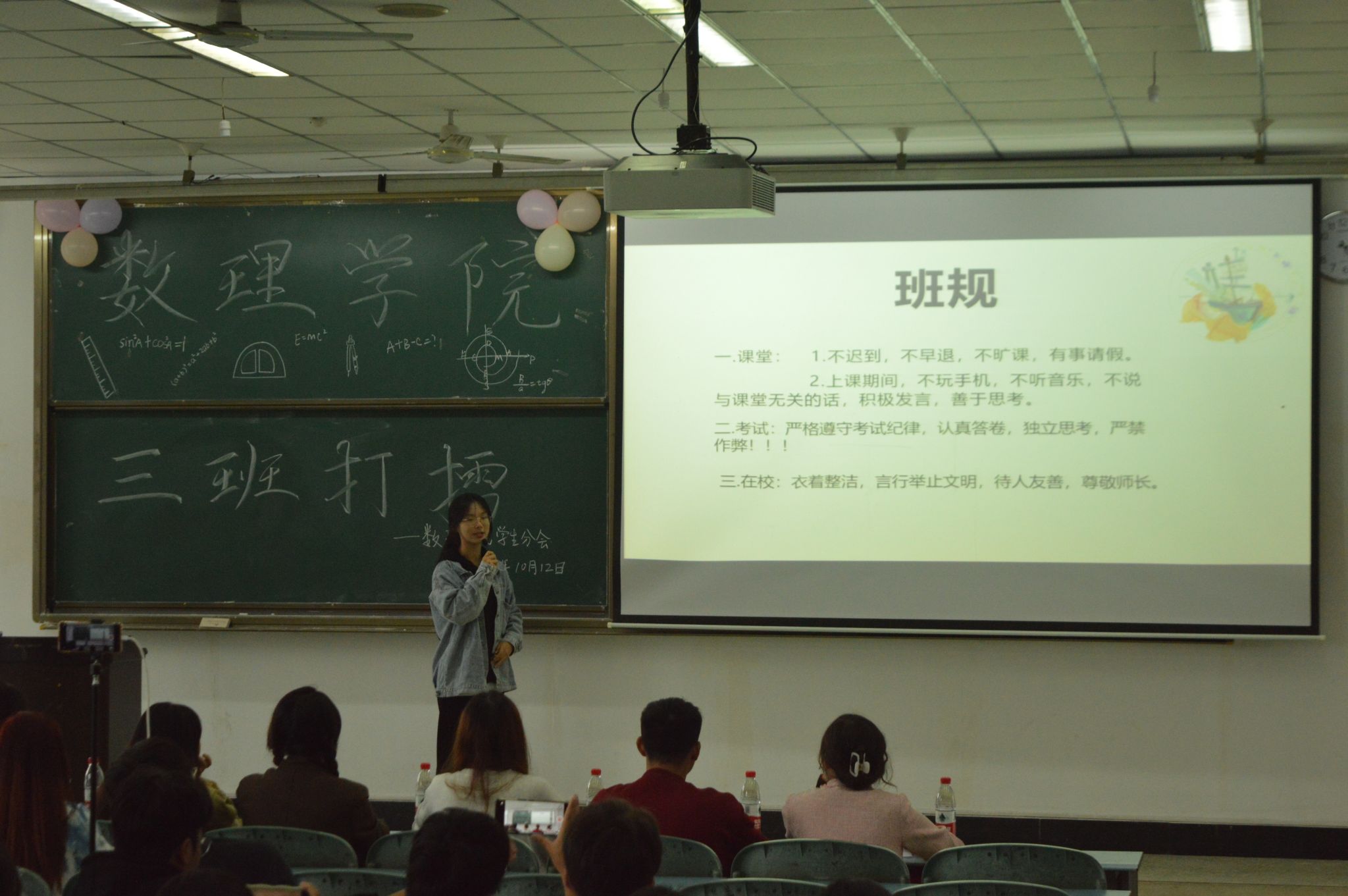 班徽、班训、班规是班级个性化的体现,在班级文化、班级管理等方面都起着举足轻重的作用。在比赛环节,数理学院23级各班参赛人员依次上台介绍,采用PPT与讲解相结合的方式向评委和观众介绍自己班级的“班徽、班规、班训”,并向大家展示了自己班级的特色风采。经过重重角逐之后,活动也进入了尾声,最终23级数应三班获得一等奖;物理一班、数应一班获得二等奖;金数班、数应四班、应统班获得三等奖;数应二班、物理二班获得优秀奖。比赛结束,数理学院学生分会主席李浪对学弟学妹们的表现做出了点评,并对同学们在陈述时存在的不足提出了改进的方法。