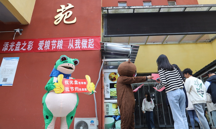 本网讯(文、图/代成刚)为深入学习宣传贯彻习近平总书记关于树立大食物观的重要论述精神,构建绿色、文明、和谐的乐师校园,在10月16日第43个世界粮食日和我国粮食安全宣传周来临之际,后保部在所属各学生食堂开展了以“践行大食物观 保障粮食安全”为主题的节粮、爱粮活动。
